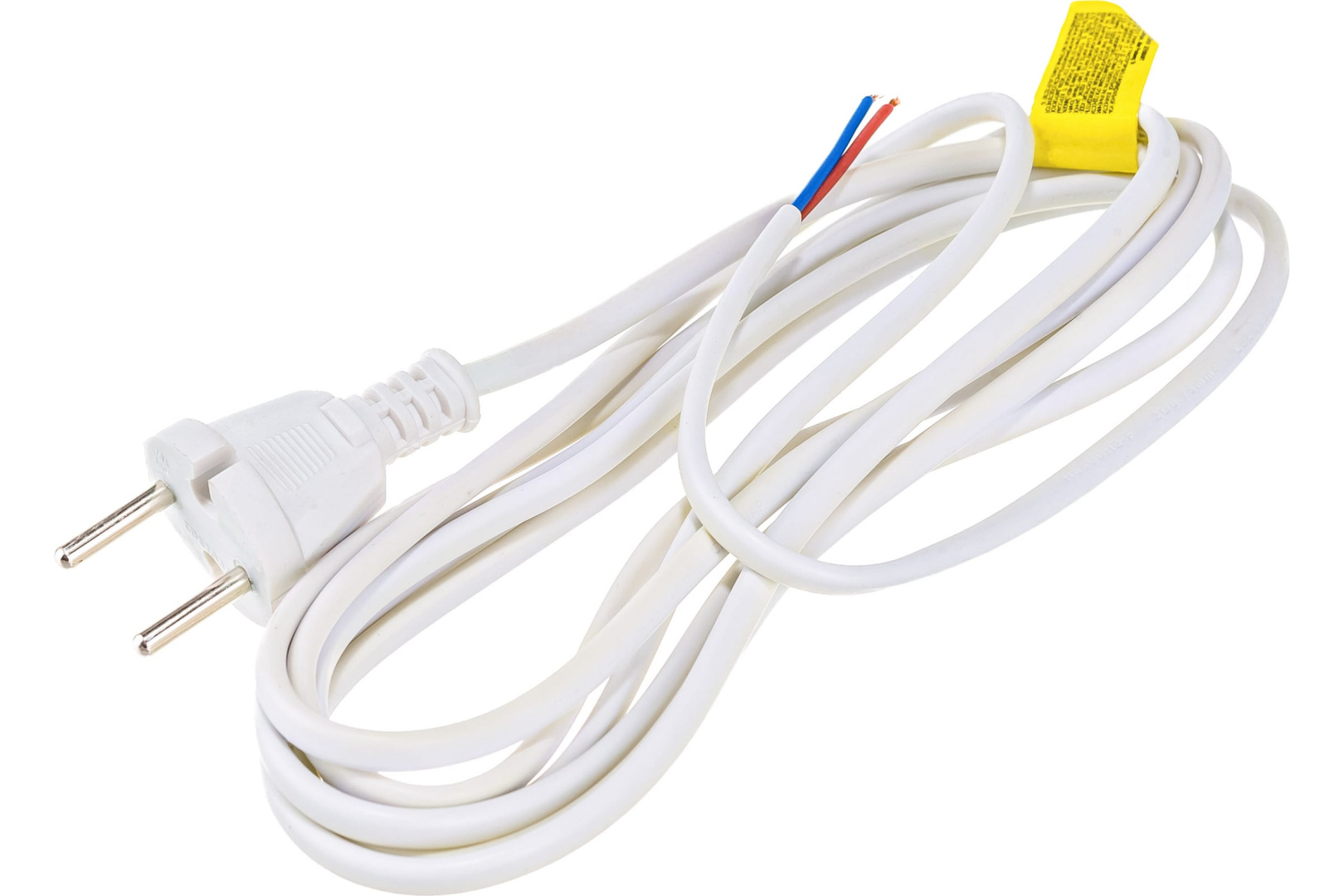 Сетевой кабель с плоской вилкой, длина 1,5 м, 6А, 1300Вт, провод ПВС 2х0,75, цвет - белый