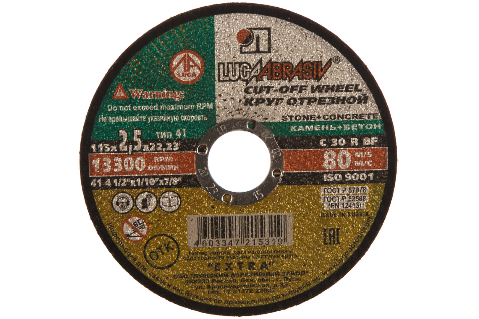 Круг отрезной по камню, 115 х 2,5 х 22 мм Луга Россия