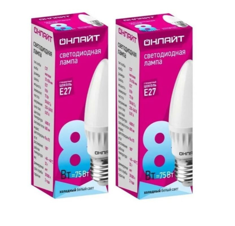 Лампа св/д ОНЛАЙТ свеча 8Вт E27 4K холодный свет 71635