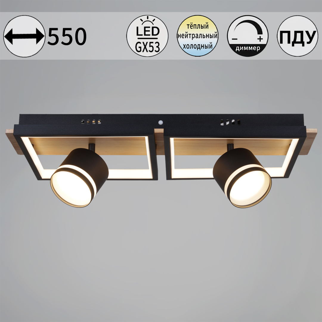 Люстра светодиодная S219560/2+2 BK+WOOD с пультом 98W 7840lm 550*240*170